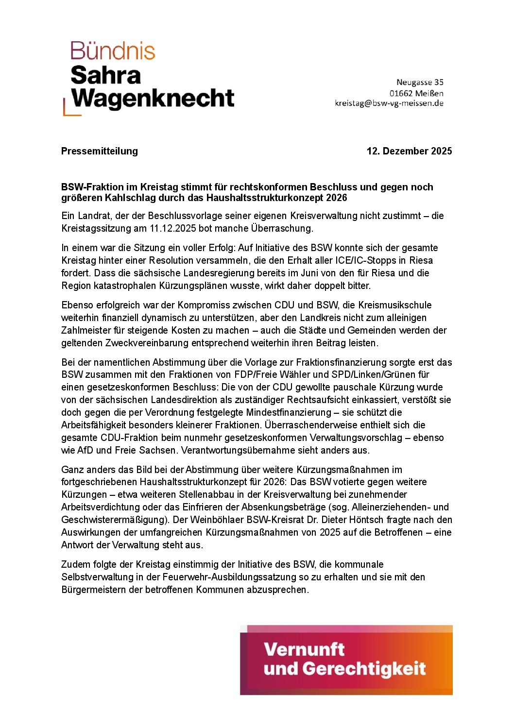 ,Am 81. Jahrestag nahmen der Radebeuler BSW-Kreisrat Norbert Menz und BSW-Unterstützer an der Gedenkfeier zu Ehren der Opfer des Holocaust in Radebeul teil und legten im Namen der BSW-Kreistagsfraktion Blumen nieder. Dem stillen Gedenken am Rosa-Luxemburg-Platz folgte ein solches an der Gedenktafel des ehemaligen Bethesda-Hauses und heutigen Elblandklinikums. Patienten des Hauses starben damals durch das nationalsozialistische Euthanasieprogramm in Arnsdorf und Pirna-Sonnenstein.