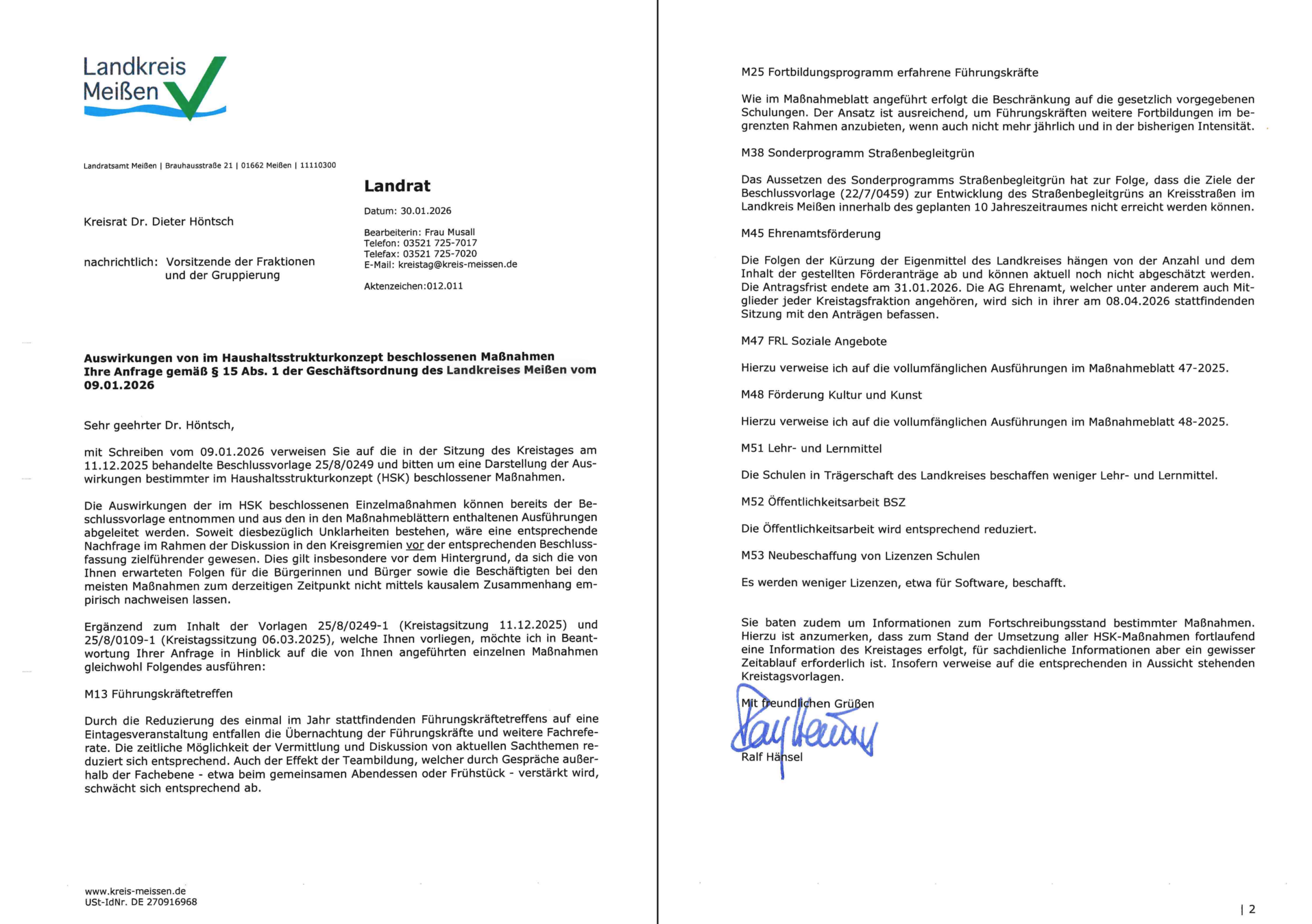 Das BSW wird der Vorlage gezwungenermaßen zustimmen, weil es gar keine Alternative gibt, wenn die Kreisverwaltung handlungsfähig bleiben soll. Mit Blick auf ein weiteres, neues Haushaltsstrukturkonzept für 2026 und die Folgejahre erteilen wir weiteren Kürzungen von sozial notwendigen Maßnahmen wie der Schulsozialarbeit oder der Kinder- und Jugendhilfe aber schon jetzt eine klare Absage.“